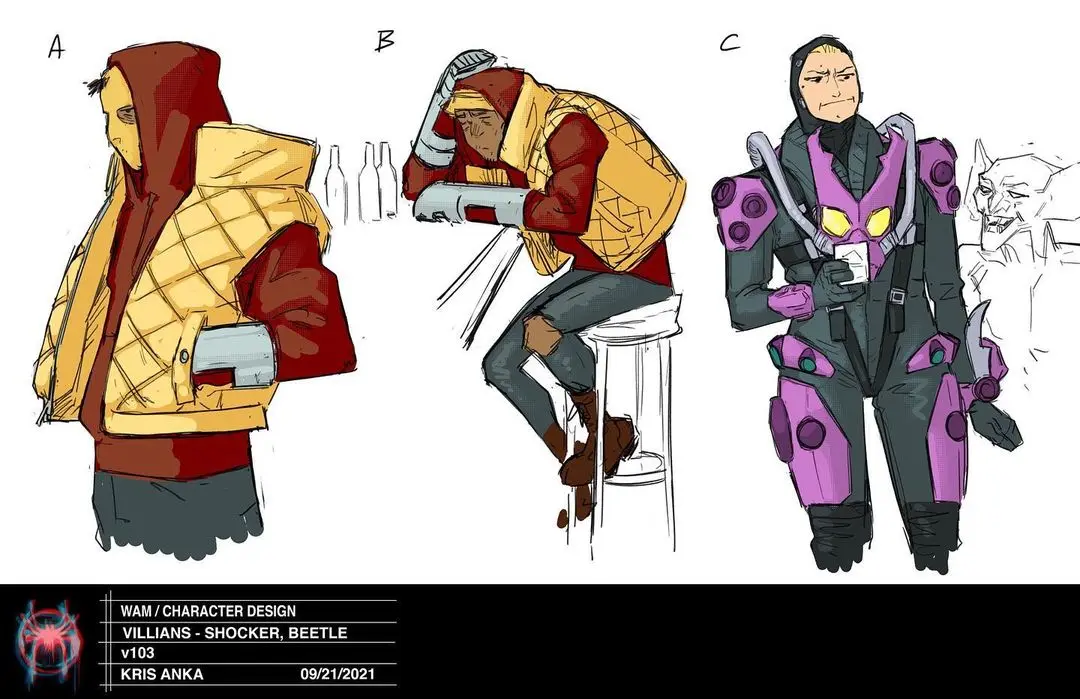 Nas artes postadas pela artista, é possível ver alguns vilões descartados, como: Doutor Octopus, Shocker, Mysterio, Besouro e Engrenagem. Confira as artes logo abaixo:
