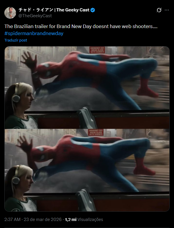 Fãs descobriram que a Sony removeu os lançadores de teia do Homem-Aranha nos trailers internacionais, confirmando as teias orgânicas.