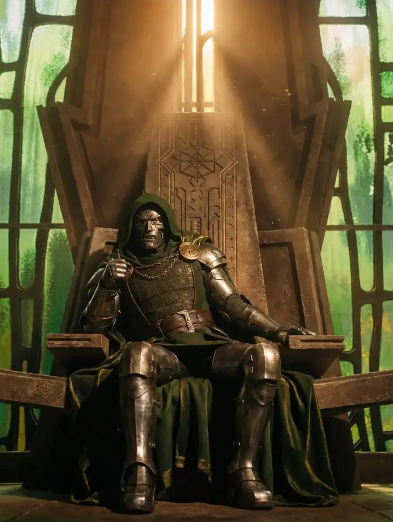 Dentro da nova leva de vazamentos, uma imagem promocional de Vingadores: Doomsday detalha o Doutor Destino sentado em seu trono.