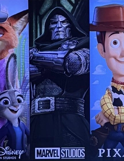 No início de seu painel, ao destacar os próximos lançamentos de seus estúdios, a Disney exibiu novamente aquela arte clássica do Doutor Destino no MCU.