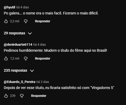 Uma vez que, com 3.190 comentários na publicação do trailer, o que mais podemos ver são os fãs reclamando e pedindo a alteração do título.